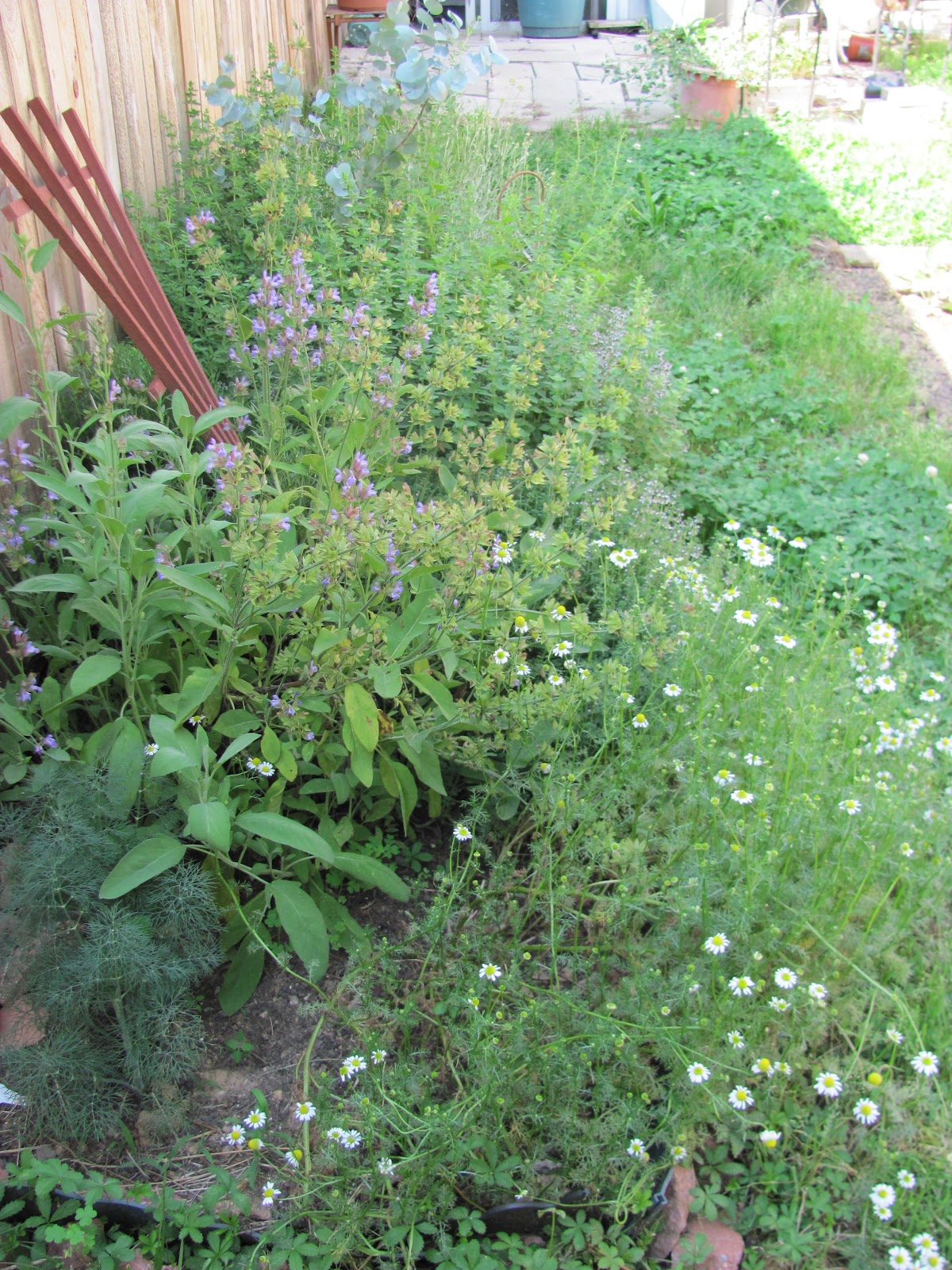 The overflowing herb garden ... survived last winter, and has been severely pruned twice!